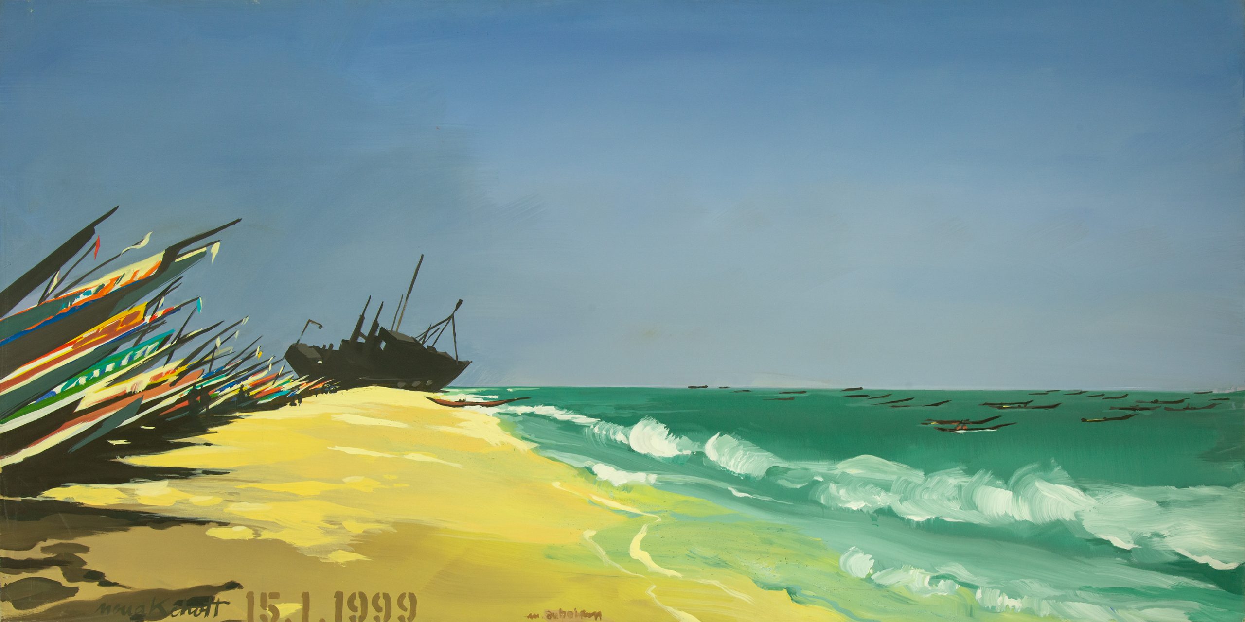 Le « Dakar » – Etape n°14 : Sur la plage de Nouakchott (Mauritanie) – acrylique sur toile – 100 x 200 cm